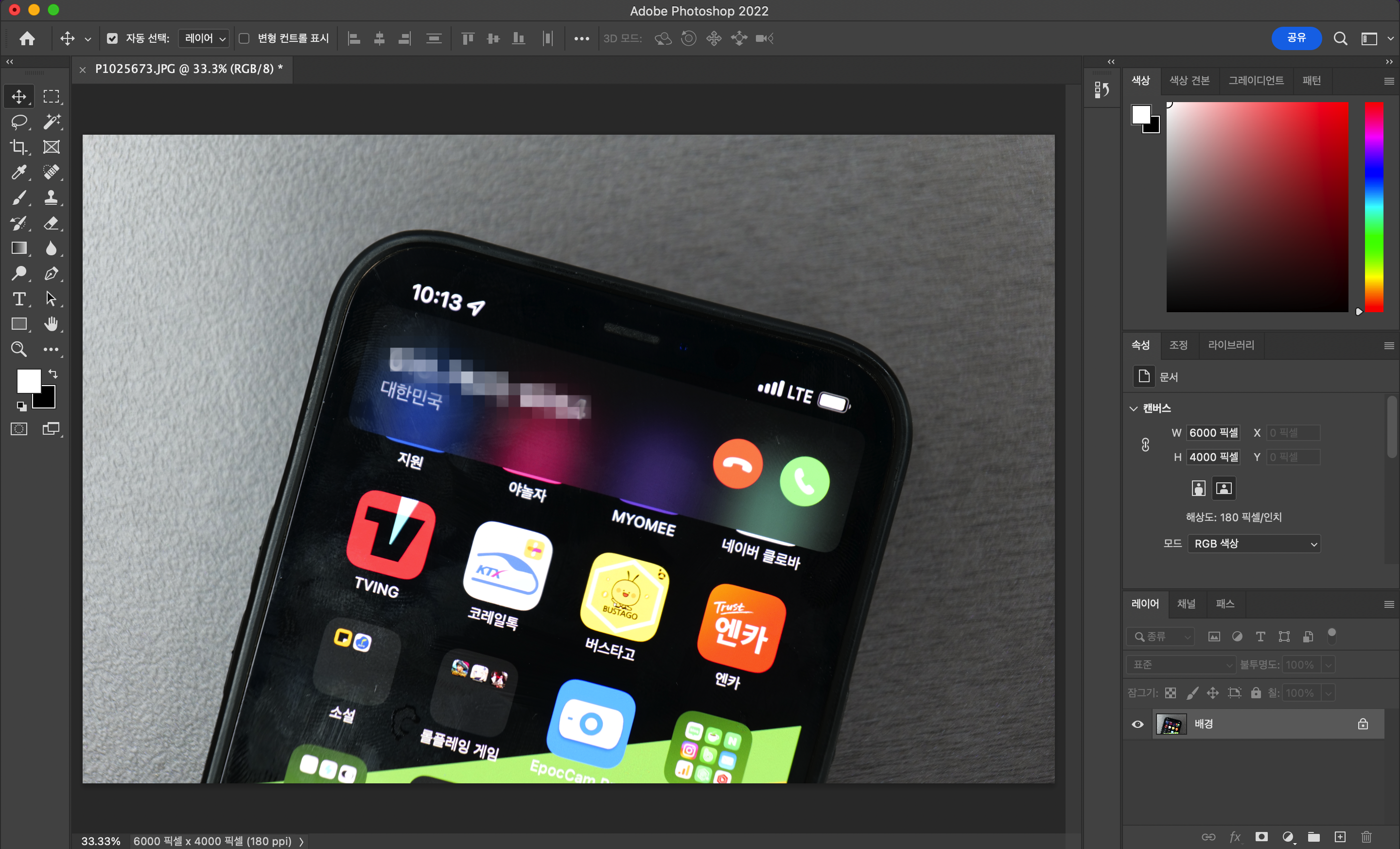 저는 맥북에서 포토샵을 사용하고 있는데요. 윈도우 버전과 크게 다르지 않으니 똑같이 따라서 해주시면 될 것 같아요. 먼저 사진을 불러줍니다. 단축키도 있어요. 사진 단축키는 Ctrl + O 입니다. 맥북에서는 Cmd + O를 눌러주거나 사진 파일을 포토샵 아이콘으로 드래그를 하면 됩니다. 저는 사진을 드래그해서 포토샵 아이콘으로 보내서 사진파일을 여는 방식을 선호합니다.