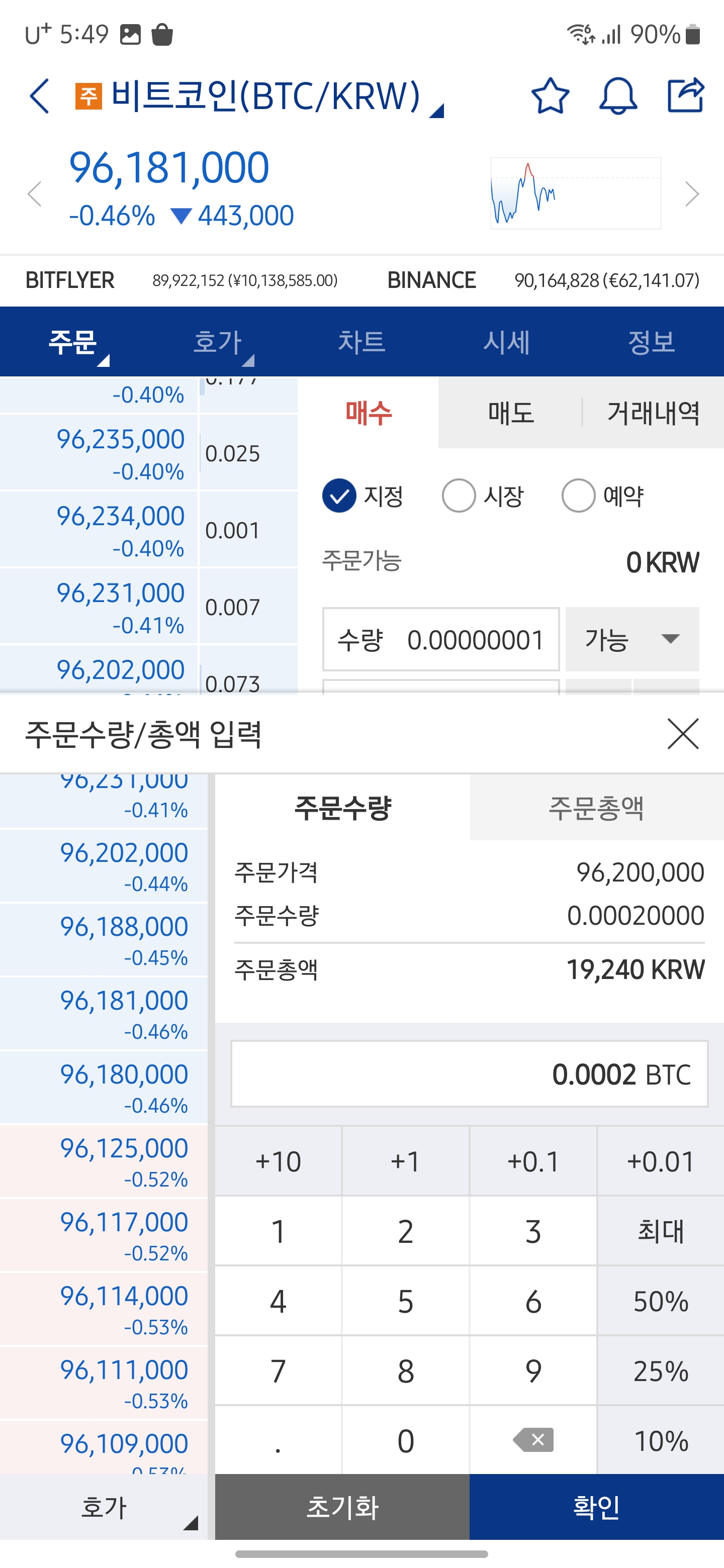 비트코인 수량 선택 후 매수