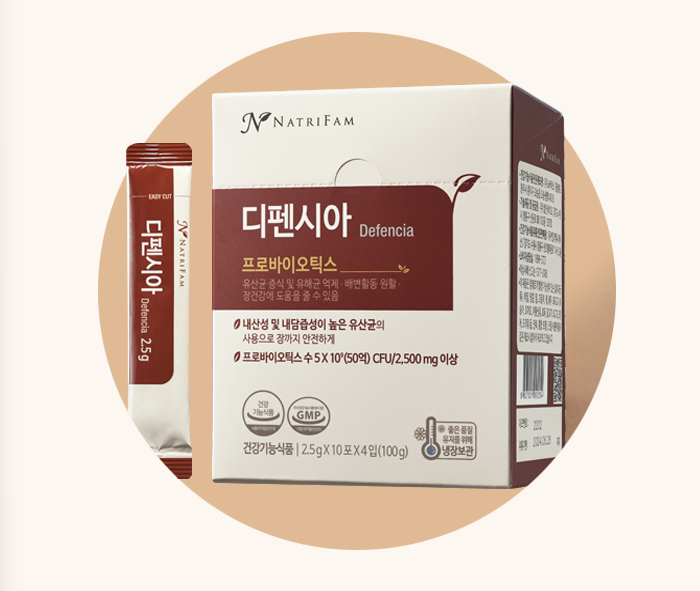 디펜시아는 내산성과 내담즙성이 우수하기 때문에 식전에 물을 한 컵 마시고 공복에 먹는 것이 좋습니다. 장까지 안전하게 유산균이 도달합니다.
