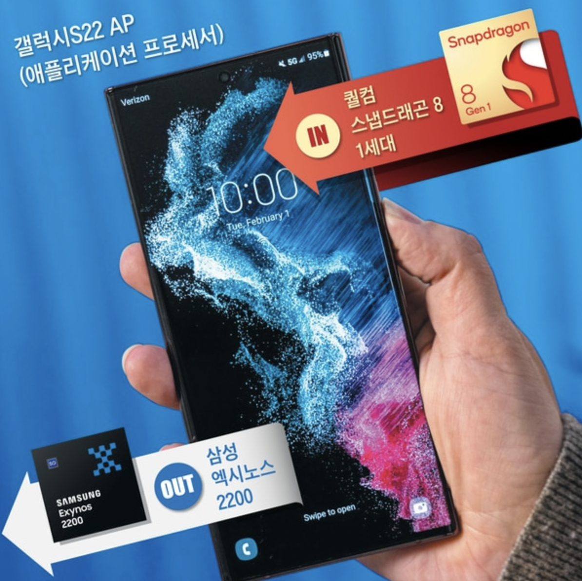 갤럭시s22에는 수율문제로 엑시노스2200이 아닌 스냅드래곤8 1세대가 탑재됩니다. 과거에는 한국과 인도시장 등 몇개 국가에서는 엑시노스를 사용했었는데, 이제는 완전히 스냅드래곤 AP를 사용하고 있습니다.